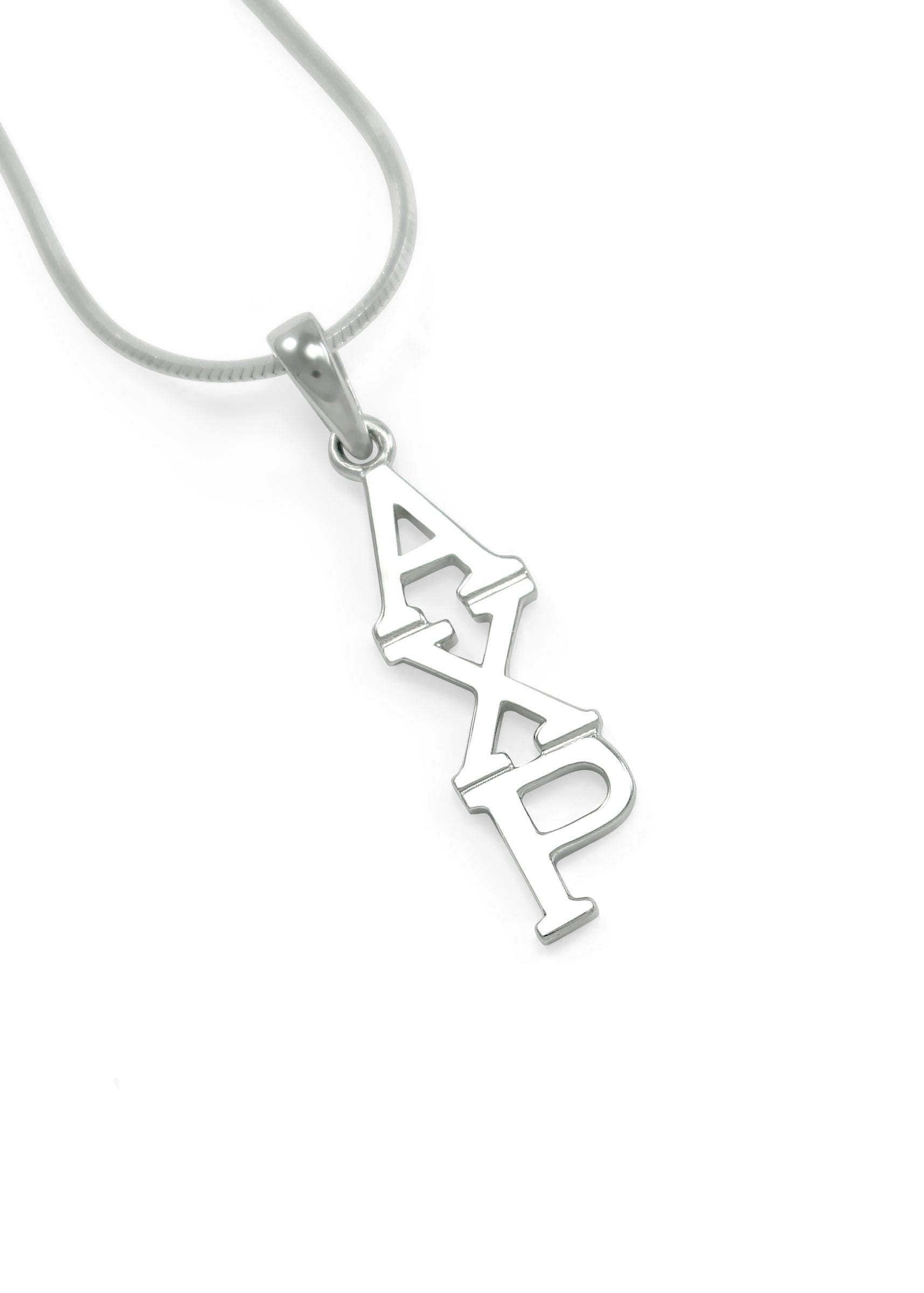 A classic and simple sterling silver Alpha Chi Rho lavalier necklace pendant. This lavaliere pendant is finished with rhodium for a brilliant, lasting shine. The ultimate gift for any Alpha Chi Rho member! Get this piece of sterling silver Greek jewelry now for recruitment, initiation, or graduation!