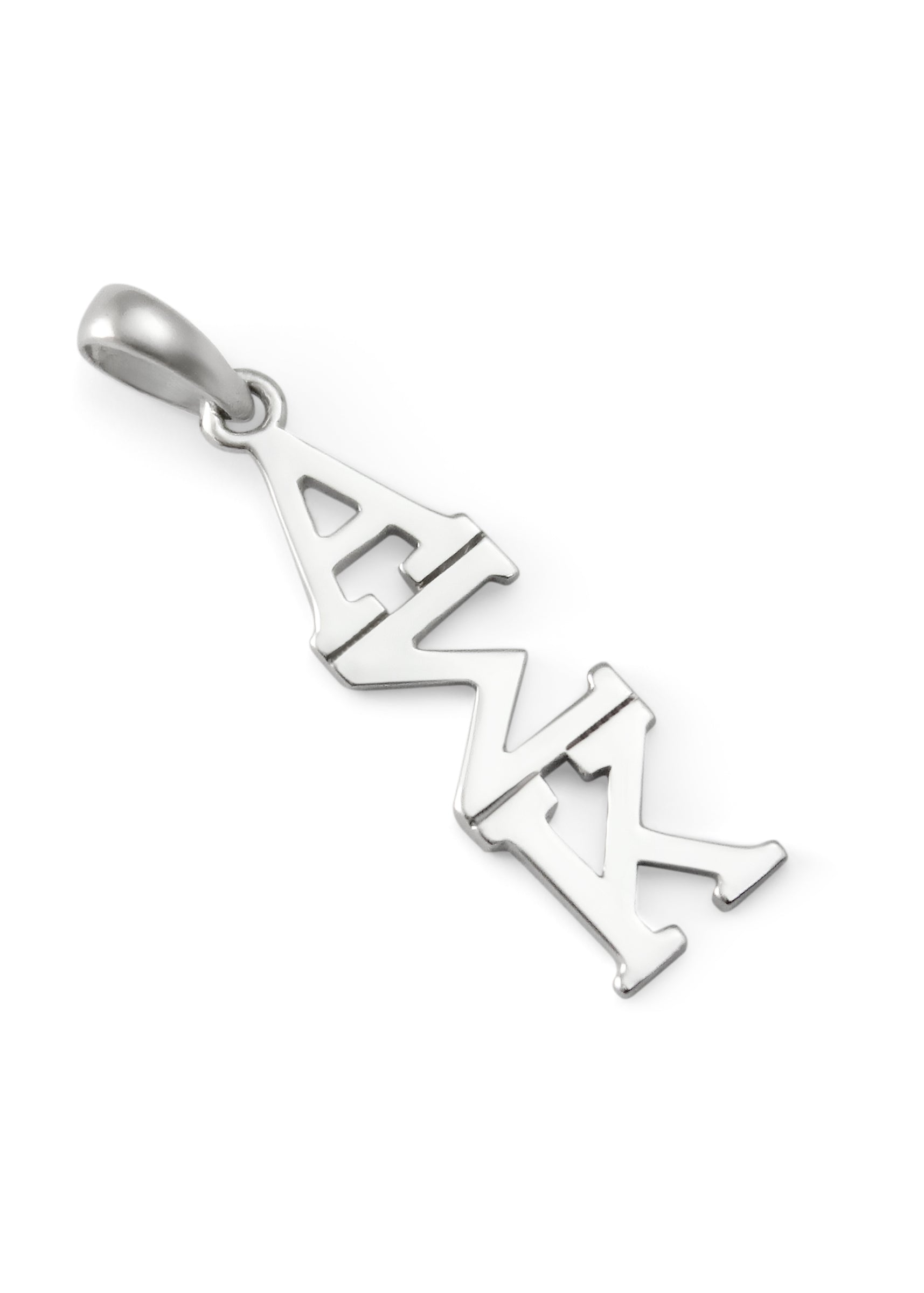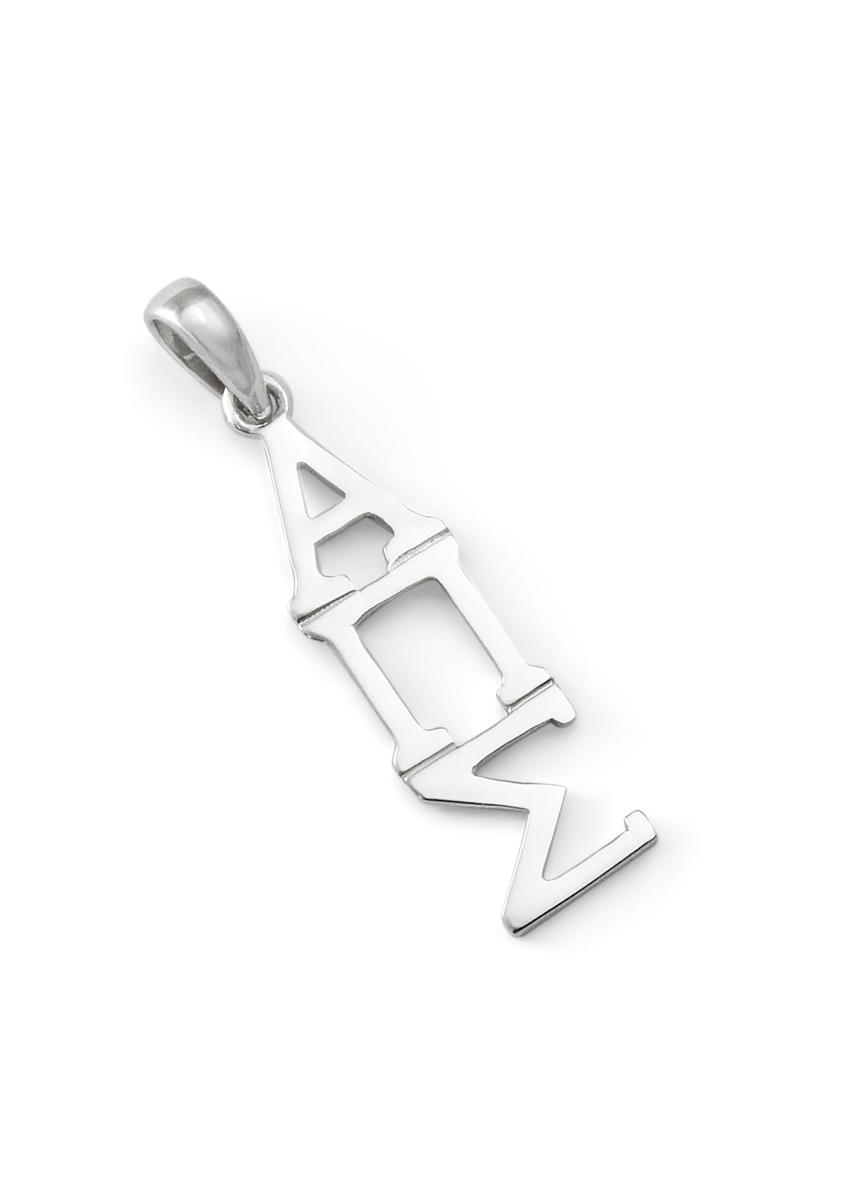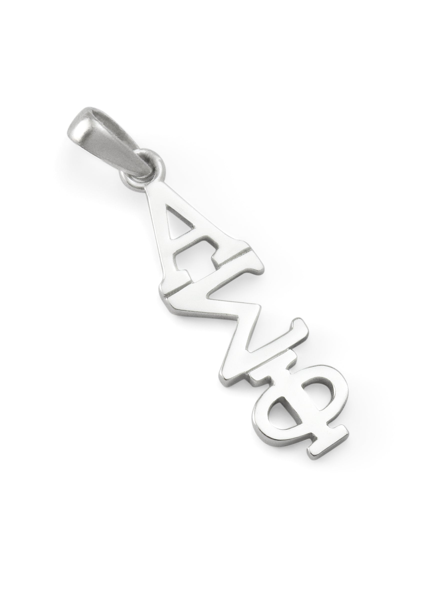 A stunning diagonal sterling silver Alpha Sigma Phi lavaliere pendant with ΑΣΦ Greek letters and simulated diamonds. Finished with rhodium for a brilliant, lasting shine. This pendant...